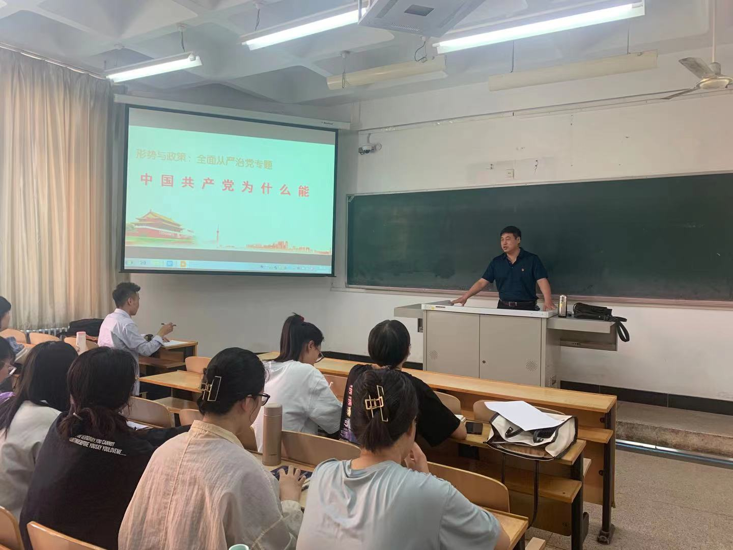 2021年6月17日,公司党总支书记马广辉在第二教学楼B110为经济与管理公司工商2018级80名本科生讲授《形势与政策》课,讲课主题是:中国共产党为什么 能。中国共产党从小到大、由弱到强,从一叶扁舟到巍巍巨轮,一百年间,党的面貌、国家的面貌、人民的面貌、军队的面貌、中华民族的面貌发生了前所未有的变化,从站起来到富起来,再到强起来,取得了举世瞩目的伟大成就。课程从有远大理想追求、有科学理论引领、有选贤任能机制、有严明纪律规矩、有自我革命精神、有强大领导能力六个方面,阐释了中国共产党为什么能取得如此巨大的成就。课后,同学们纷纷表示,马书记的精彩授课让他们更加热爱自己的祖国,热爱中国共产党,要主动学党史、感党恩、听党话、跟党走,努力成为德智体美劳全面发展的社会主义建设者和接班人。
