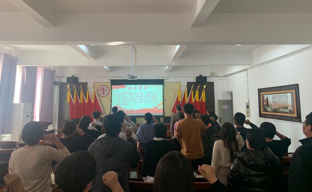 本次培训共计四部分内容。第一,重温教师誓词。全体教师举起右手,列队肃立,在经理张光存同志的带领下庄严宣誓。第二,观看爱国影片。组织全体教师观看了纪录片《为了和平》,并要求会后观看《跨过鸭绿江》,布置了撰写观后感的相关要求。第三,重温了《新时代高校教师职业行为十项准则》。第四,宣讲警示案例。以案说纪,教育全体教职员工严守师德底线,切实遵守教师职业行为十项准则,营造风清气正的育人环境。