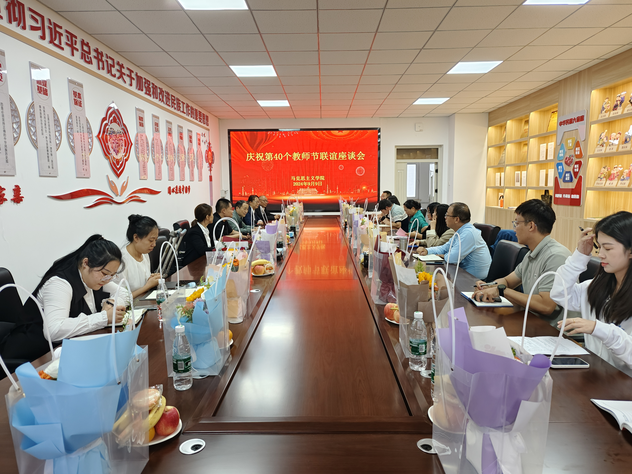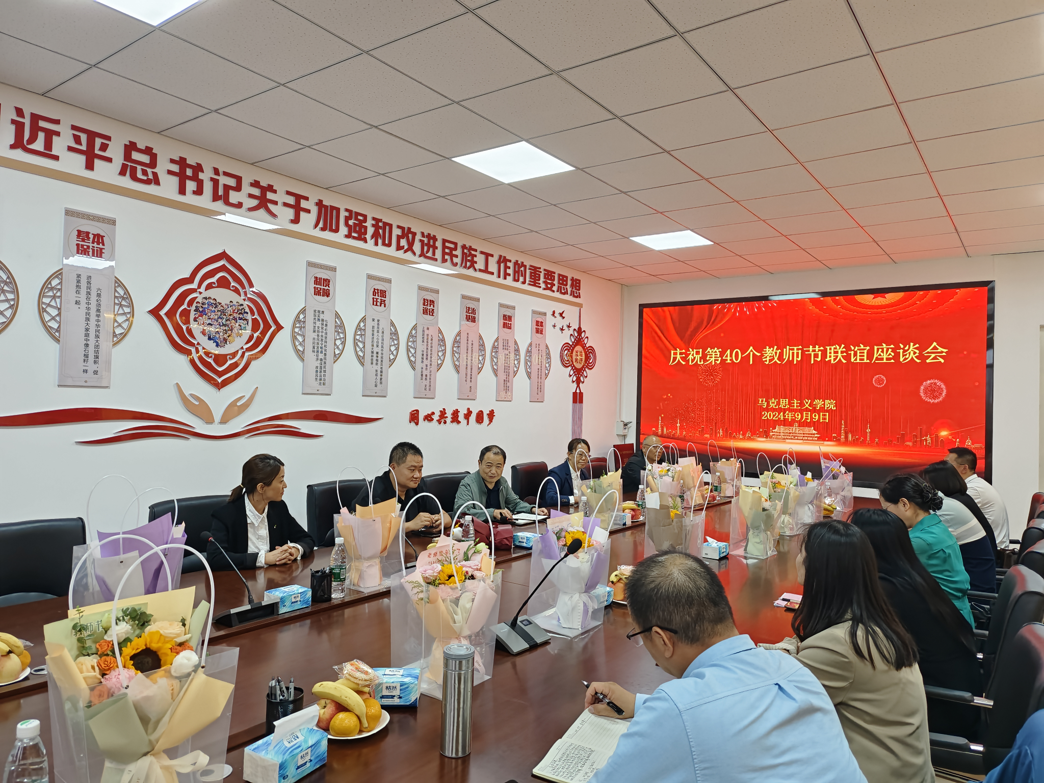 为大力弘扬教育家精神,展现新时代高校思政课教师立德树人、自信自强的精神风貌,在全国第40个教师节来临之际,9月9日下午,suncitygroup太阳新城在秋实楼(扩建)502会议室召开了庆祝第40个教师节联谊座谈会。公司领导班子、公司各教研室教师代表参加了座谈会。