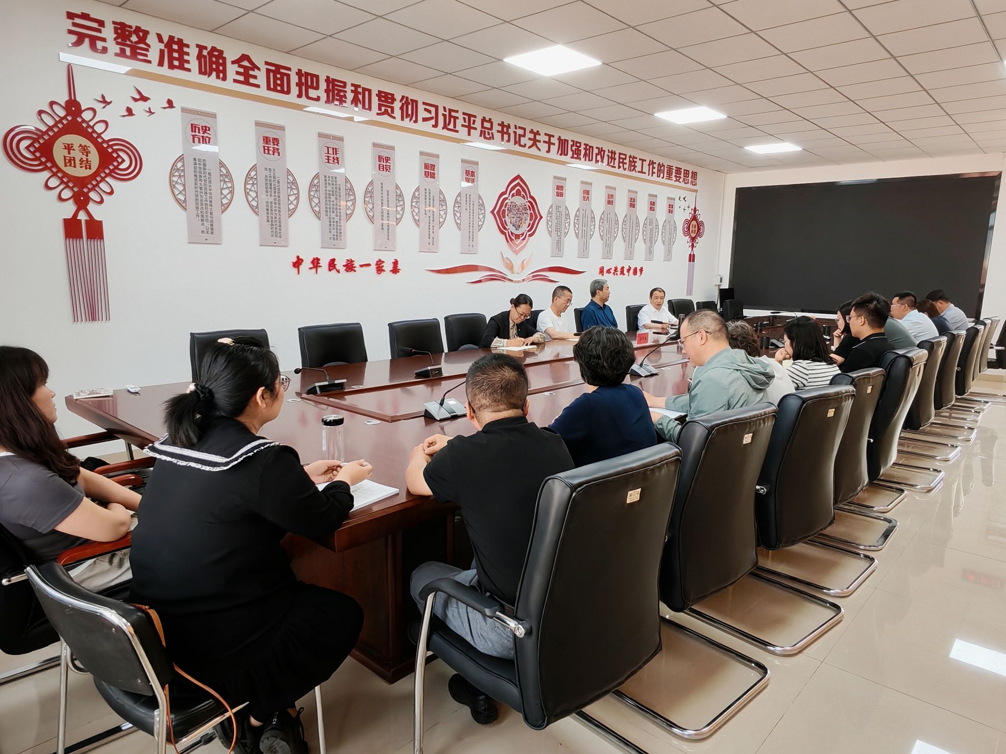 徐学谦教授作了《内蒙古各民族交往交流交融史一书的写作与思考》专题讲座。徐学谦教授从古代、近代、新中国成立后和新时代四个时期,详细讲解了内蒙古各民族交往交流交融的历史源流与演进过程,揭示了内蒙古各民族在政治、经济、文化和社会等全方位的互动规律,为内蒙古铸牢中华民族共同体意识奠定了坚实的史料基础。