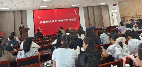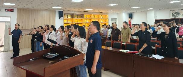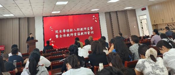 杨德桥经理带领新入职教师宣誓,将弘扬教育家精神纳入宣誓内容,全体教师共同重温誓词,进一步增强职业责任感。