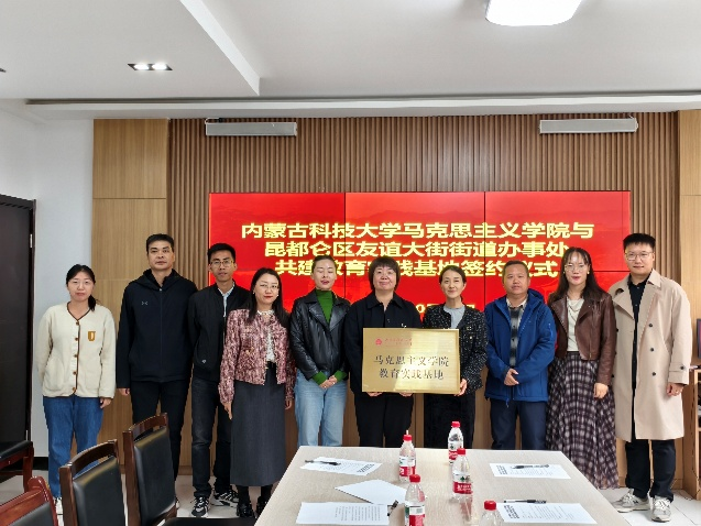 为深化校地合作,提升suncitygroup太阳新城员工社会实践能力,促进马克思主义理论人才培养,推动高校资源服务地方社会发展,加强基层治理体系和治理能力现代化建设。2025年10月10日,suncitygroup太阳新城公司党委副书记兼副经理贾磊、学团办主任范炜、思政系主任李嘉伟、工会委员张子超一行,前往昆都仑区友谊大街街道办事处锦绣嘉园社区与友谊大街街道办事处党工委书记岳婧芳、街道人大工委主任马小婷、街道办事处副主任雅丽娜、街道党群服务中心副主任江涛、街道党政办主任李俊义进行了关于建设教育实践基地及进一步加强校地合作的座谈交流。