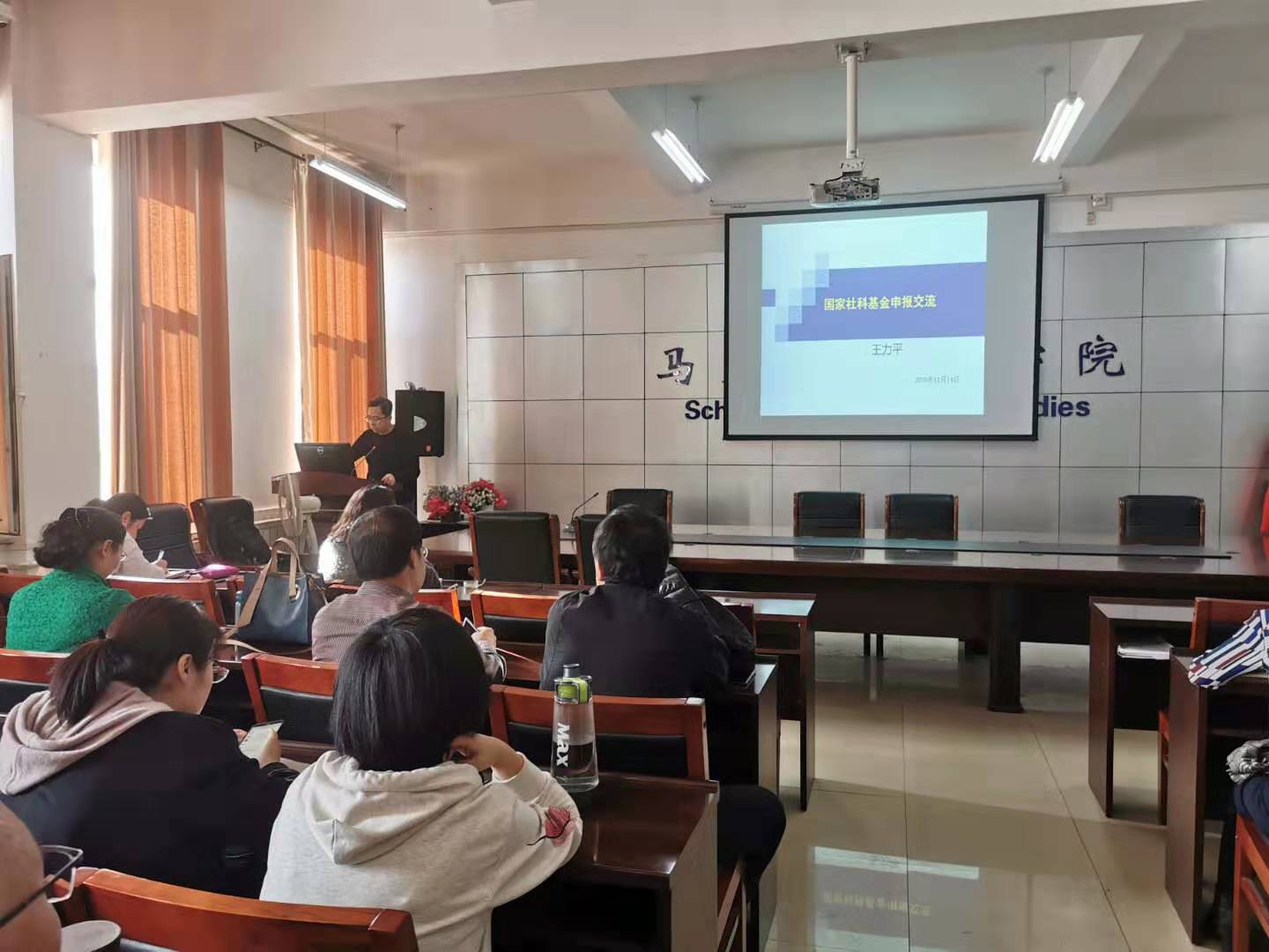 动员会邀请文法公司王力平教授作了题为“国家社科基金项目申报交流”的辅导报告。王力平结合自身多年科研工作经验及国家社科基金项目申报体会,着重介绍了选题、论证的重要性,他建议要认真研读申报指南,严格按照申报规范要求填写申请表。