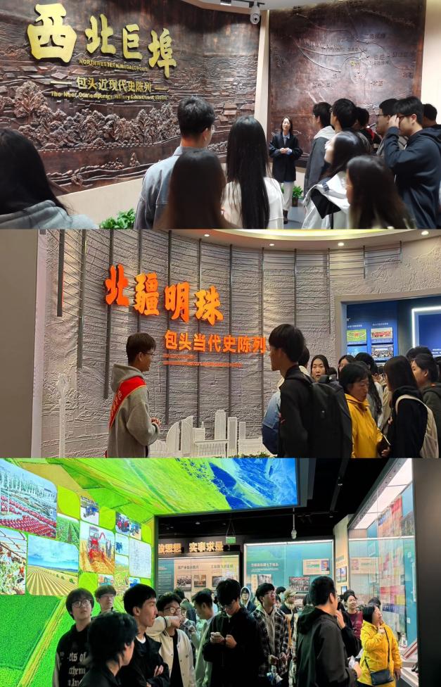 此次实践研修活动中,师生们参观了“九原长歌“——包头古代史历史文化展厅,仿佛穿越了时空隧道,置身于那些遥远的年代,感受着古人的勤劳与智慧,领略着中华文明的源远流长和中华文化的博大精深,有助于更深刻地理解文化是民族的灵魂、是社会发展的重要推动力。”西北巨埠“——包头近现代史展厅,以多场景沉浸式地展示了老包头的百年发展历程,让师生们深刻体会到中国共产党在各族人民群众中的强大引领力和各族人民群众并肩战斗的革命精神,有助于更深刻地理解党和群众的紧密联系;”北疆明珠“展厅——包头当代史展厅,回眸了“齐心协力建包钢”的火红历史,展望新时代包头的辉煌前景,有助于更深刻地理解自然生态资源、劳动资料、劳动者、科学技术在人类经济社会发展中的重要作用。此外,还参观了包头古代岩画、包头民俗文化等展厅,感觉着包头先民童真古拙的艺术表达,热情浓郁的民俗风情。