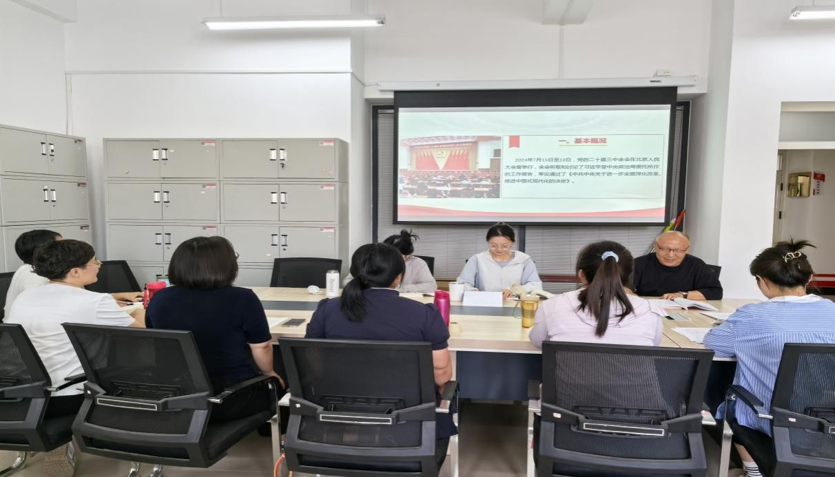 形势与政策教研室:形势与政策教研室围绕如何讲授“二十届三中全会精神”这一专题进行集体备课,大家集思广益,讨论如何对“二十届三中全会精神”这一专题进行教学设计、教学思路的建构以及案例运用,教研室每位老师轮流进行说课。大家讨论,“二十届三中全会精神”这一专题的教学思路围绕“为什么要改”,“往哪里改”,“要怎么改”这一逻辑,首先讲清楚“改革—全面深化改革—进一步全面深化改革的逻辑演进”,这一部分内容作为授课的重点内容,结合生动的案例,呈现给员工;其次,讲授往哪里改,通过讲授进一步全面深化改革要紧紧围绕中国式现代化的战略要求、进一步全面深化改革要把握“六个坚持”的重大原则、进一步全面深化改革部署中的战略重点。最后,讲好思政课,将“二十届三中全会精神”由浅入深、有理论深度、有实践温度地带入课堂。