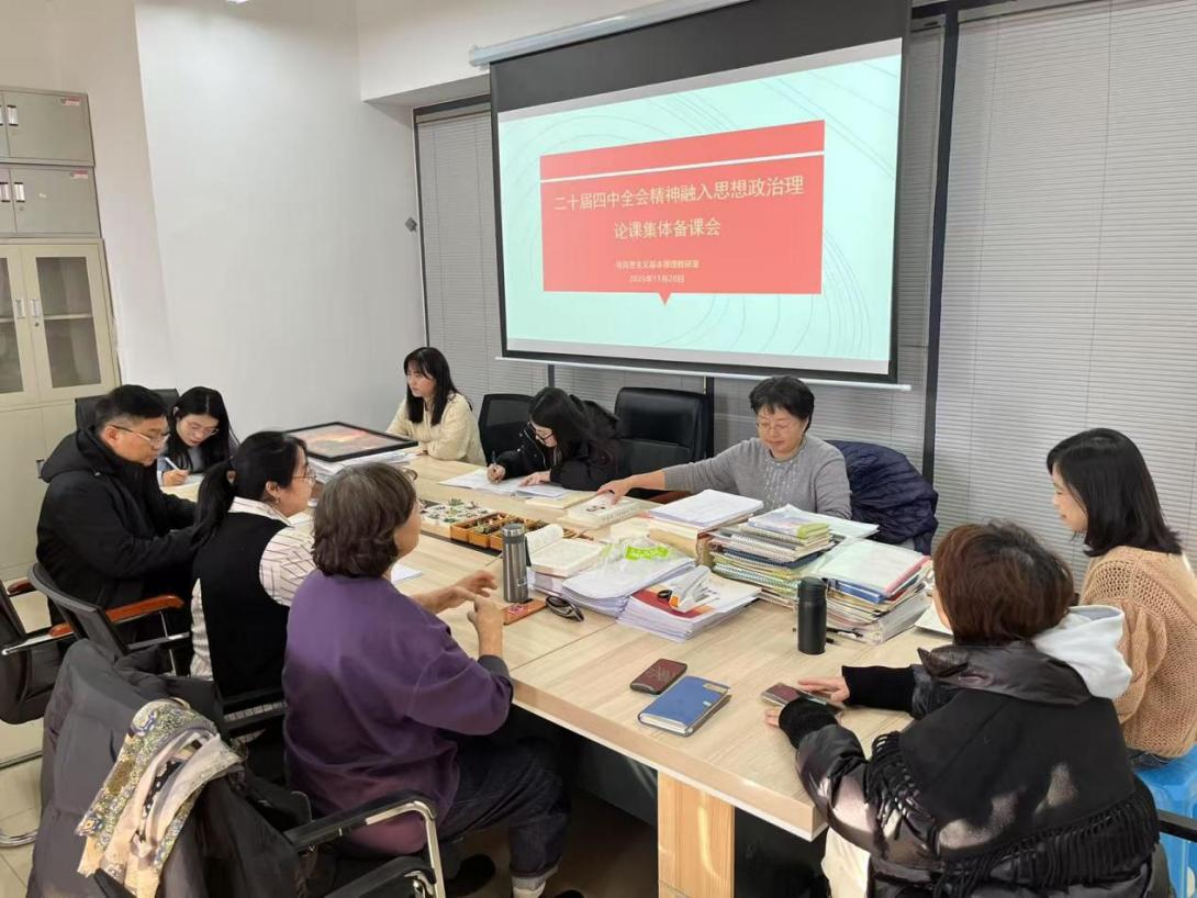 为扎实推动党的二十届四中全会精神系统融入思政课教学,切实提升思政课教学的时效性与针对性,suncitygroup太阳新城于近日以教研室为单位组织开展专题集体备课会。各教研室主任与专任教师共同参与,围绕全会精神如何融入各门思政课展开深度研讨。