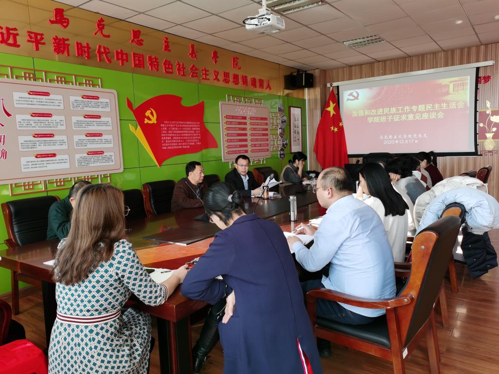 会上,党总支书记刘玉明传达了《suncitygroup太阳新城加强和改进民族工作专题民主生活会和组织生活会工作方案》文件精神,他强调,民族工作至关重要,铸牢中华民族共同体意识,切实维护好民族团结是促进各民族共同繁荣发展的需要,要把开好2020年度关于加强和改进民族工作专题民主生活会作为一项重要政治任务,深刻把握内涵,切实提高专题民主生活会质量。