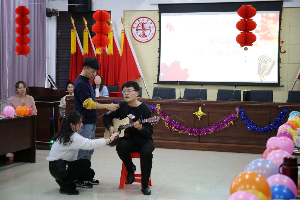 接着,由公司教师精心准备的节目将活动推向高潮。老师们通过舞蹈、歌曲、诗朗诵、吉他弹唱的形式,为党的百年华诞送上最美的祝福。节目间隙,还穿插有猜红歌、猜谜语等游戏环节,大家踊跃参与,活动现场洋溢着欢乐、喜庆、祥和的气息。