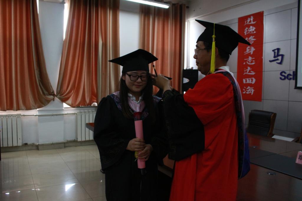毕业典礼在雄壮的国歌声中拉开序幕,教授委员会委员、教师代表、毕业生代表、在校生代表分别进行了发言。发言结束后行拨穗礼,公司雎密太教授为毕业生拨冠正穗。同时,公司副书记为考取研究生的同学颁发纪念品,希望他们不忘初心,继续前进。接下来的宣誓环节由毕业生代表胡彦琪同学作为领誓人,带领全体毕业生庄严宣誓。最后毕业生向公司赠送礼物,大家合影留念,毕业典礼圆满落下帷幕。