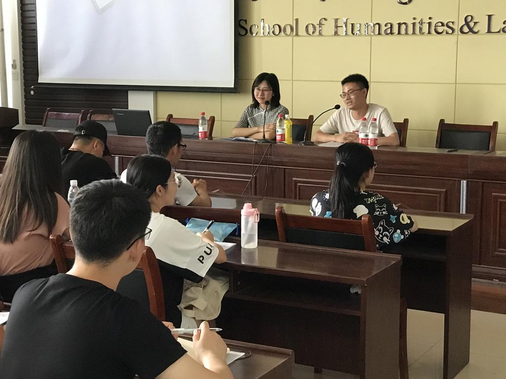 公司邀请于颖、付励恒两位优秀员工代表回母校做汇报交流活动。于颖,2011级思想政治教育专业本科生,现为中山大学suncitygroup太阳新城马克思主义基本原理专业博士研究生。付励恒,2014级思想政治教育专业本科生,现为江西师范大学法律硕士研究生。