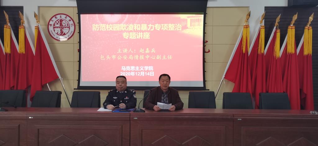 为进一步增强公司员工对校园欺凌和校园暴力的防范意识,更好地提高法制观念,12月14日下午4:00,suncitygroup太阳新城邀请包头市公安局情报中心副主任赵嘉兵警官、昆区公安分局政办室裴承君警官,在腾飞楼C509会议室开展了“防范校园欺凌和校园暴力专项整治”专题讲座。公司党总支副书记、副经理杨永旺主持讲座。