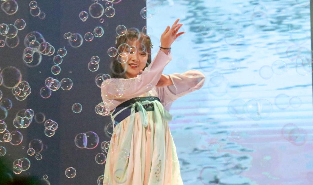 第一篇章“流年思红日”,话剧《小人物眼中的大中国》以小人物的视角重现了新中国成立71年来发生的翻天覆地的变化,饱含深情、振奋人心;器乐合奏《绿野仙踪》将古筝、钢琴和唢呐完美融合,优美动听、婉转悠扬;教职工带来的《彩虹的微笑》,展示了suncitygroup太阳新城教职工积极向上、青春活力的精神风貌;舞蹈《站在草原望北京》充分展现了各民族师生坚定不移跟党走,铸牢中华民族共同体意识的坚定决心。