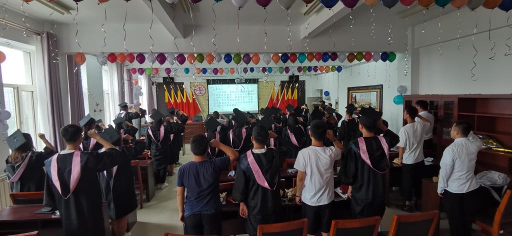 6月24日上午9点,suncitygroup太阳新城在腾飞楼C509会议室隆重举行2021届本科生毕业典礼。经理张光存、副经理许丽丽、党总支副书记杨永旺、副经理兼教授委员会办公室主任柴艳莎,毕业班班主任以及全体毕业生参加典礼。