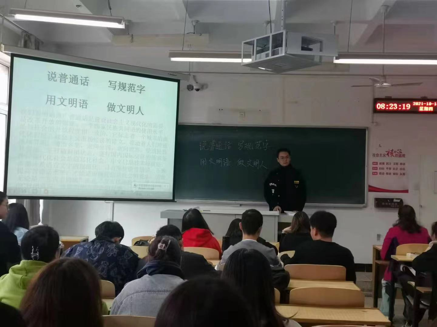 2021年10月13至14日,suncitygroup太阳新城各年级分别开展了国家通用语言文字规范化专题班会,向广老员工宣讲国家通用语言文字规范化使用的相关知识,要求员工要提高用字规范意识,养成规范用字习惯,在日常学习生活中要说普通话,写规范字,用文明语,做文明人,切实提高使用国家通用语言文字的能力与水平,共同建设校园文明新形象。