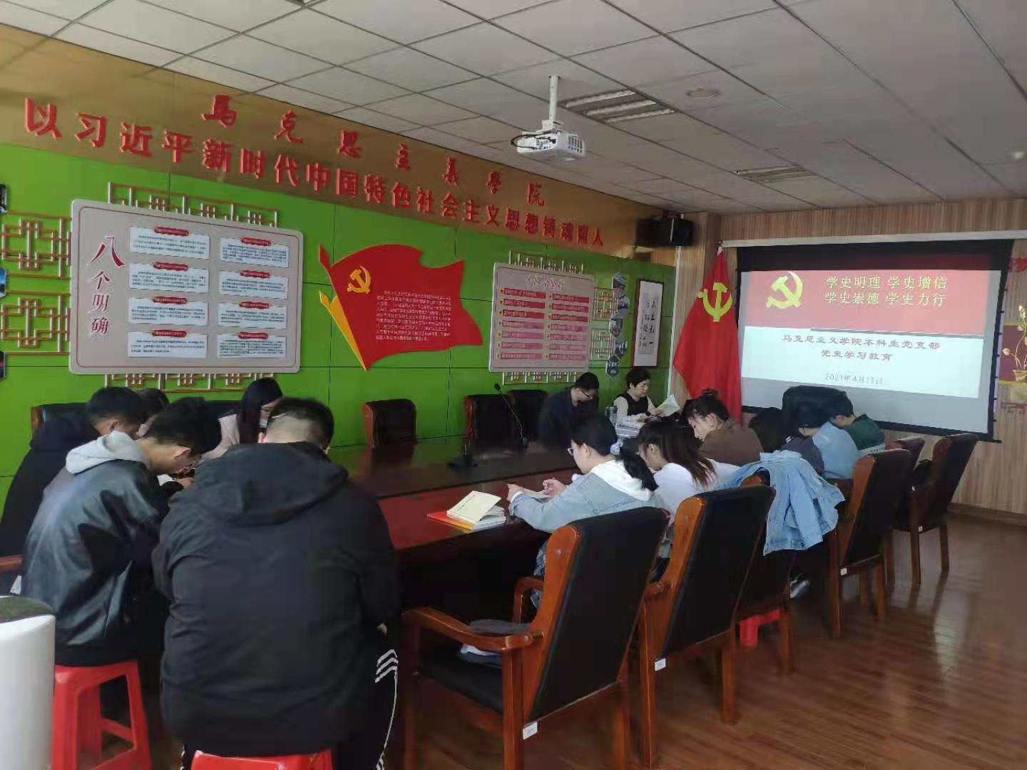 2021年4月13日上午10:30,suncitygroup太阳新城本科生党支部在腾飞楼C511开展第一次党史学习教育,全体党员参加学习。本次党史学习教育以“学史明理、学史增信、学史崇德、学史力行”为主题,主要学习了《论中国共产党历史》一书中“中国革命历史是最好的营养剂”篇章,同时学习了“学习强国”平台上《百年奋斗,初心弥坚》一文,并安排了《中国共产党简史》相关课后学习的内容。