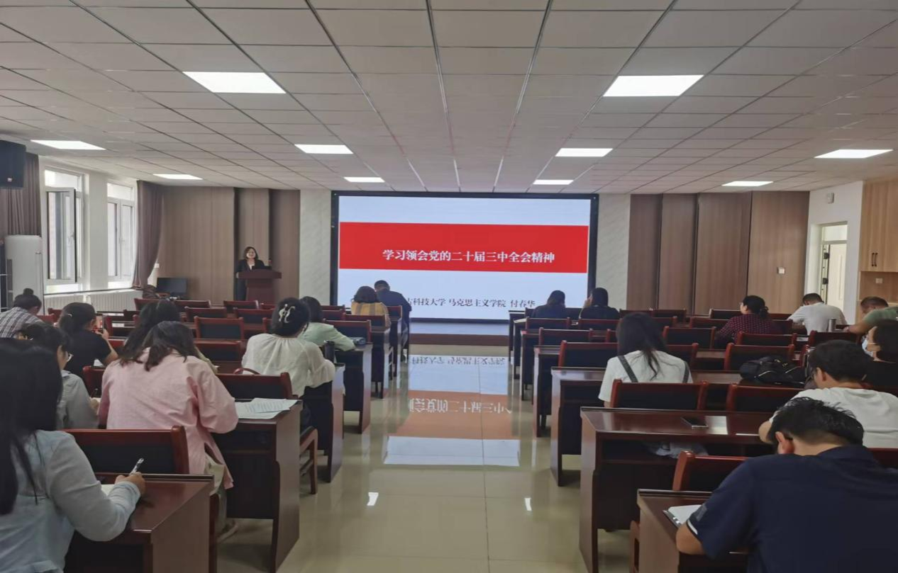 为深入学习贯彻党的二十届三中全会精神,9月5日下午,suncitygroup太阳新城邀请付春华老师在秋实楼副楼505会议室作了题为《学习领会党的二十届三中全会精神》的宣讲,全体教职工参加了本次宣讲。